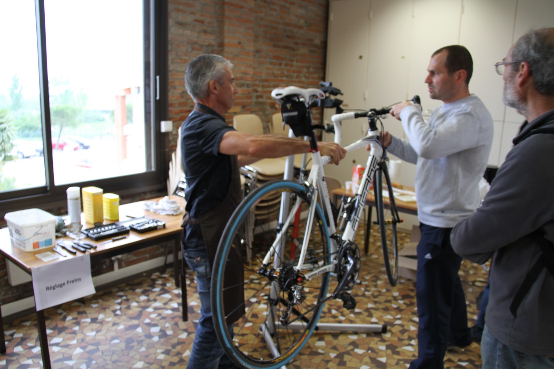 Si on en croit le dicton "mariage pluvieux - mariage heureux", et bien souhaitons de même au club de Balma dont c'était la première organisation de rando FSGT ! Une rando bien humide au départ mais aussi sur toute la première moitié du parcours... Les choses se sont sensiblement améliorées un peu avant le ravito, avec un retour presque au sec. Enfin façon de parler parce que les routes étaient encore gorgées d'eau et de boue. 9 CCViens pointés au départ (si j'ai bien compté ceux qui y ont été aperçus), les purs, les durs et presque autant sur le vélo pour affronter les éléments naturels déchainés. Jean-Luc R. obtient la palme de l'hésitation : au départ en voiture tout sec et en sandales, il roulera, roulera pas, puis finalement roulera ! Alain De se devait de rouler, quand on s'appelle "De-l'eau" on se doit de rouler sous la pluie