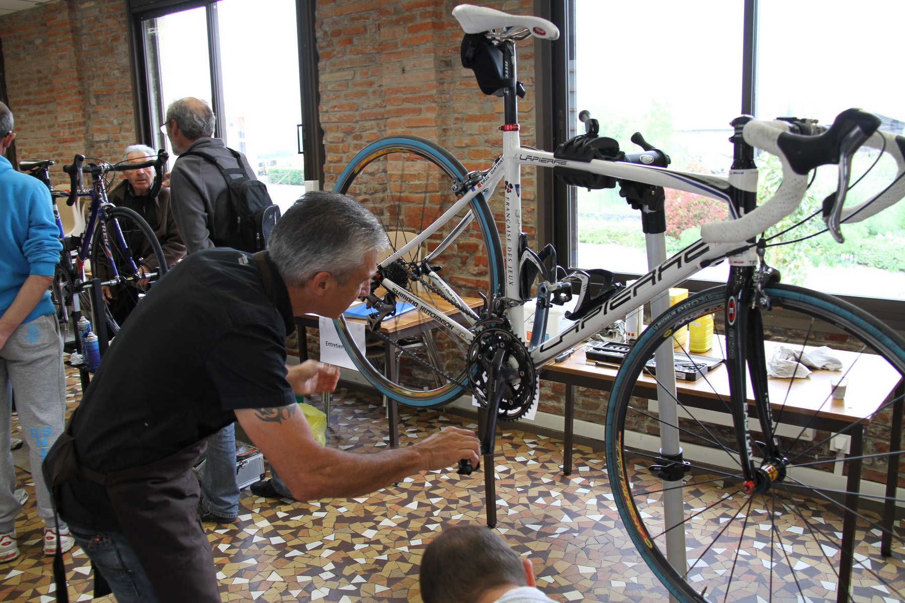 , c'est au ravito que radio La Grinche nous à donné les infos, rayon cassé et retour à la maison, et même chose pour Sergio. Il fallait aussi être prudent ce matin, le Toulousain était en promenade et il n'était pas trop disposé à se faire griller la priorité par quelques cyclistes un peu trop témèraire, quelques coup de patins sans gravité, et c'est reparti. Le parcours était plutôt sympa, 99km et plus de 900m de d+, condition météo idéal, douceur, soleil et pas de vent, mais un fléchage un peu limite. Souvent quand on arrive en bas d'une descente et que l'on doit changer de direction la flèche apparait au dernier moment, un peu d'anticipation serait la bienvenue, surtout pour la sécurité. Le coach avait étrenner une très jolie tenue Omega, dans le raidillon de la 2ème partie de parcours on aurait dit Tom Boonen dans le Mur de Grammont, il y a même des mauvaises langue qui auraient dit qu'il ressemblait plus à Tom qu'à Boonen